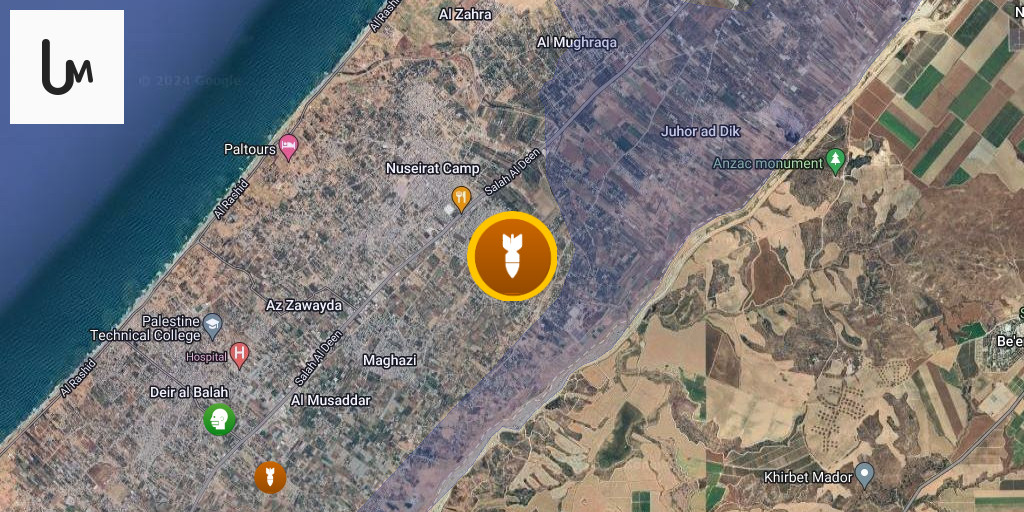 غارة جوية تستهدف بركس الصليب الأحمر شرق مفترق عبدالعال، شمال غرب مدينة غزة