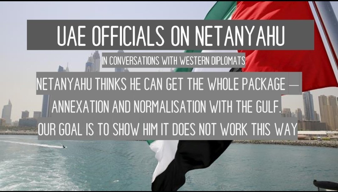 UAE criticism of Israeli PM Netanyahu. UAE officials say in conversations with Western Diplomats: "He wants to enjoy the best of both worlds. It doesn't work that way"
