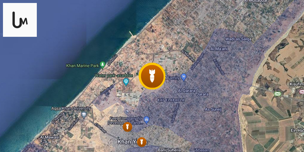 Airstrikes hit the Batn al-Sameen area south of Khan Yunis, and another airstrike hit the city center.