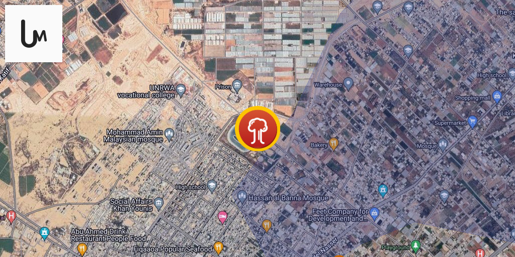 An Israeli air strike targets the Al-Katiba area in the center of Khan Yunis.