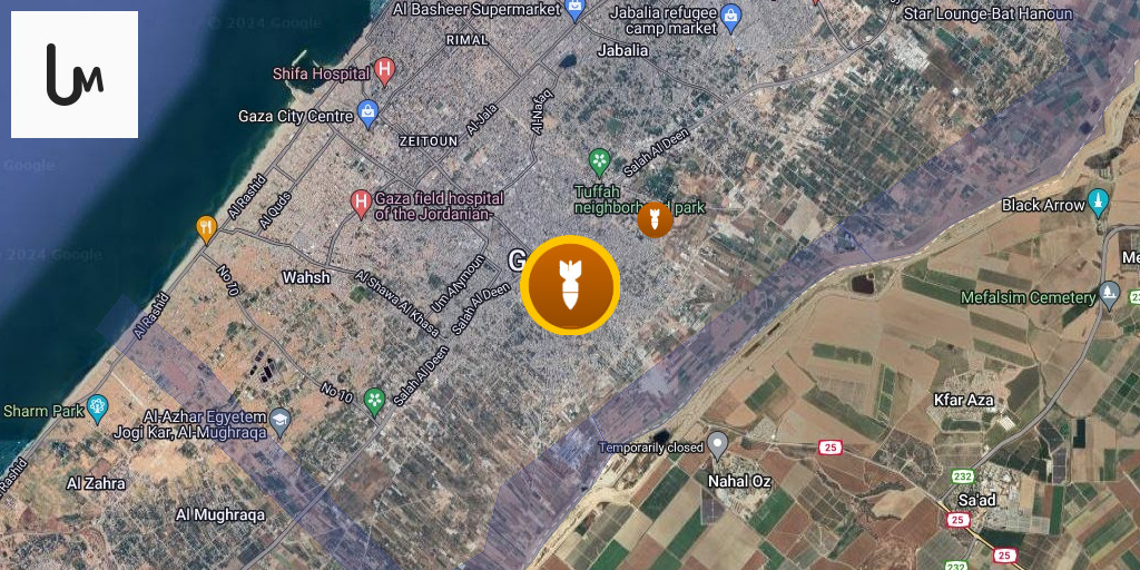 One person killed by Israeli drone fire on Al-Nazzaz Street in the Shuja'iyya neighborhood, east of Gaza City.