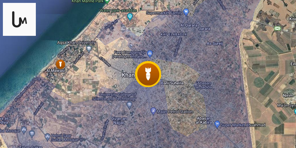 Israeli airstrikes coincide with the destruction of residential buildings east and north of Khan Yunis.