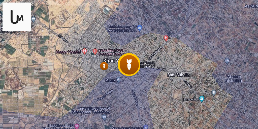 Airstrikes were launched in central and eastern Khan Yunis, along with artillery shelling of the area and low-flying warplanes.