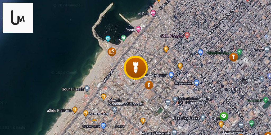 An airstrike targeted Al-Maamel Street in the Al-Daraj neighborhood in central Gaza City.