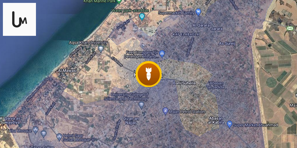 An Israeli airstrike targeted a building in the center of Khan Yunis, coinciding with artillery shelling of the same area.