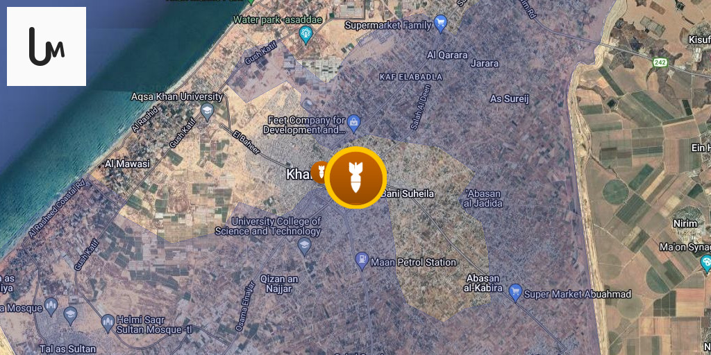 An Israeli airstrike targeted a building in the center of Khan Yunis, coinciding with artillery shelling of the same area.
