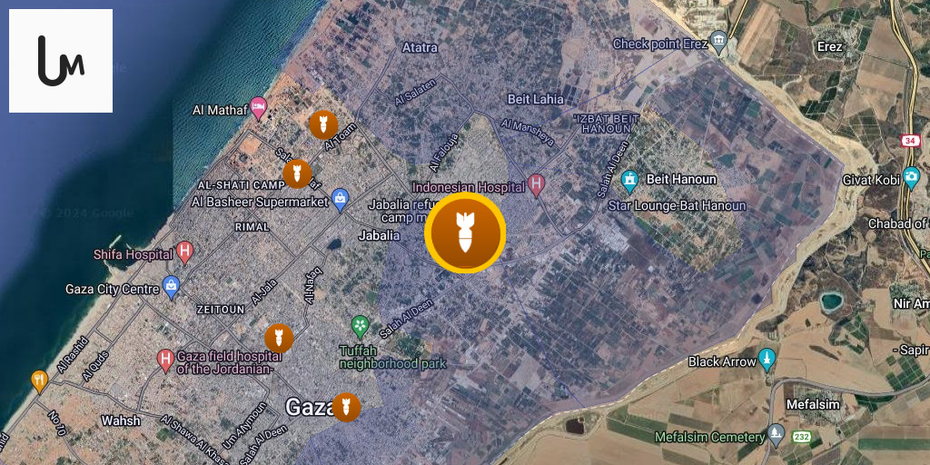 An Israeli airstrike targets the eastern areas of Jabalia, north of the Gaza Strip.