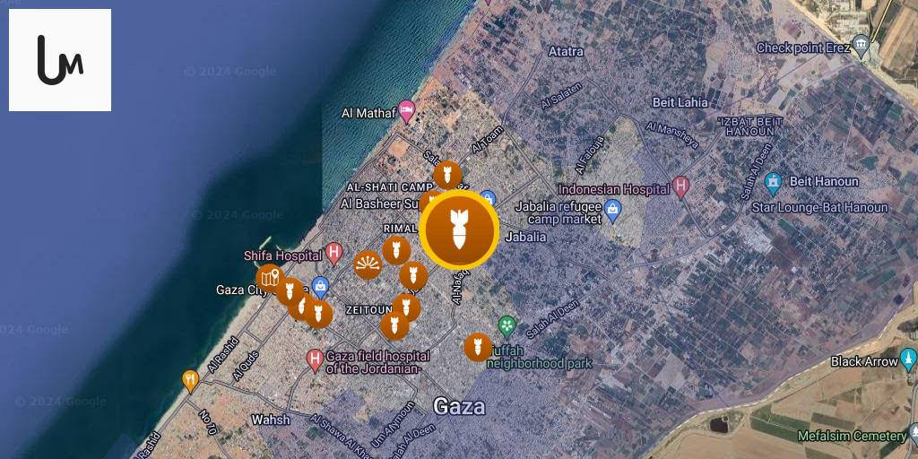 An airstrike targeted Al-Maamel Street in the Al-Daraj neighborhood in central Gaza City.