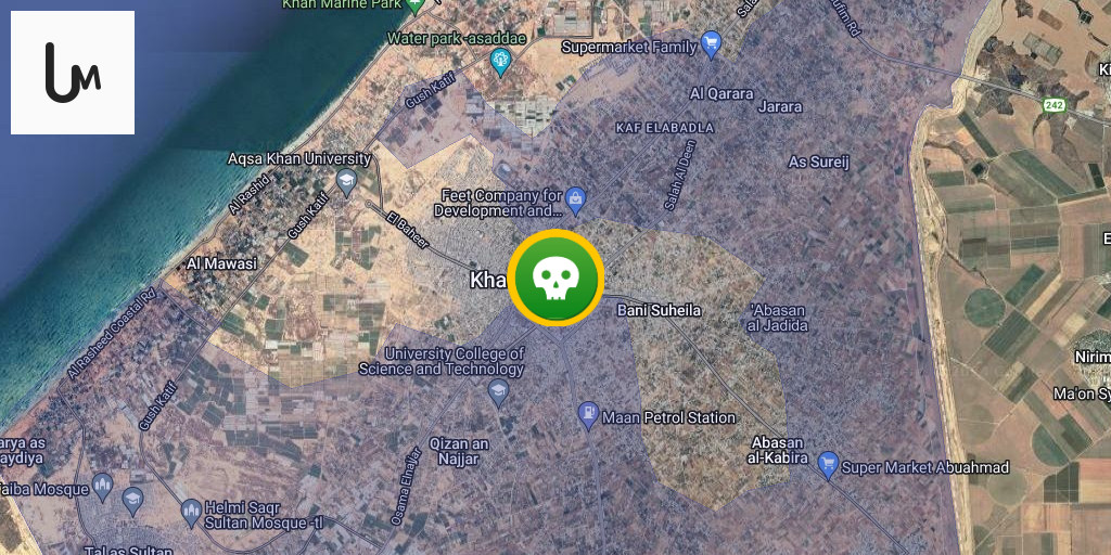 Airstrikes hit the vicinity of Al-Aqqad Mosque, northwest of Khan Yunis, in the southern Gaza Strip.