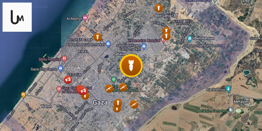 Israeli airstrikes target Mansoura Street in the Shuja'iyya neighborhood east of Gaza City.