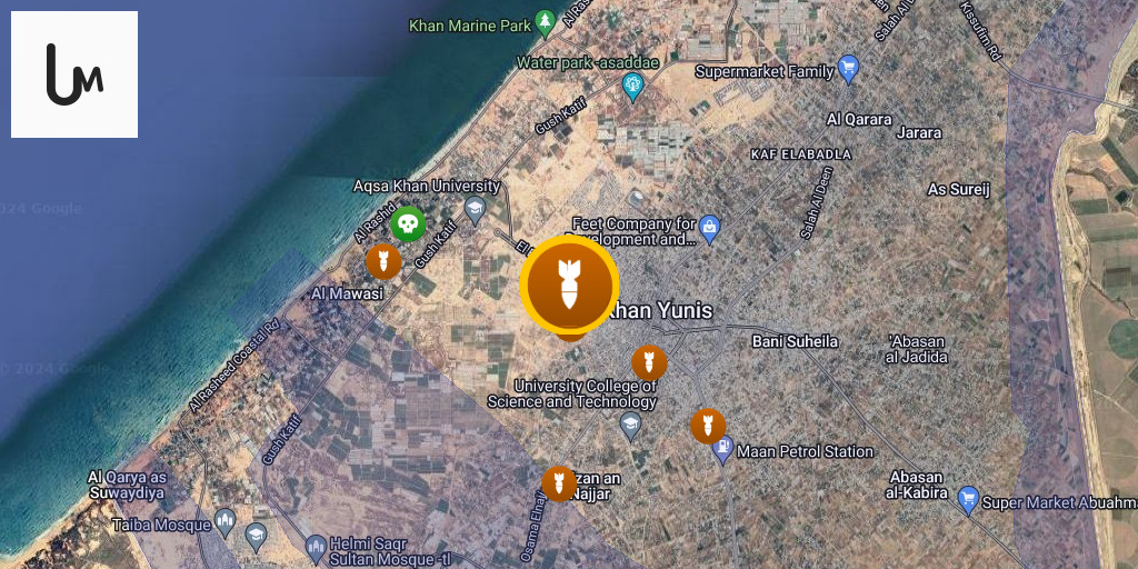 Airstrikes hit the town of Khuza'a, east of Khan Yunis.
