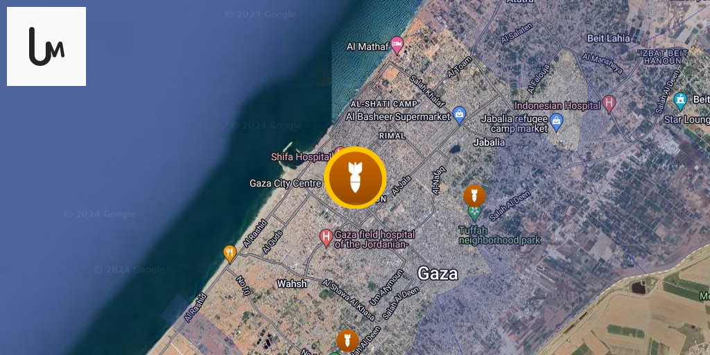 Airstrikes target the outpatient clinic of Al-Aqsa Martyrs Hospital in the central Gaza Strip.