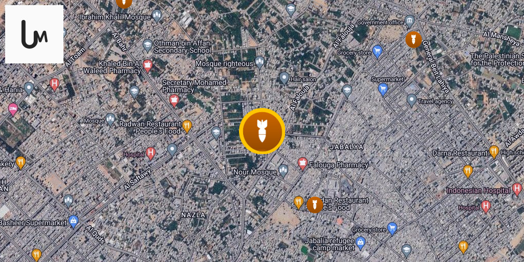 Airstrikes hit the Bir al-Na'ja area, west of Jabalia camp, in the northern Gaza Strip.