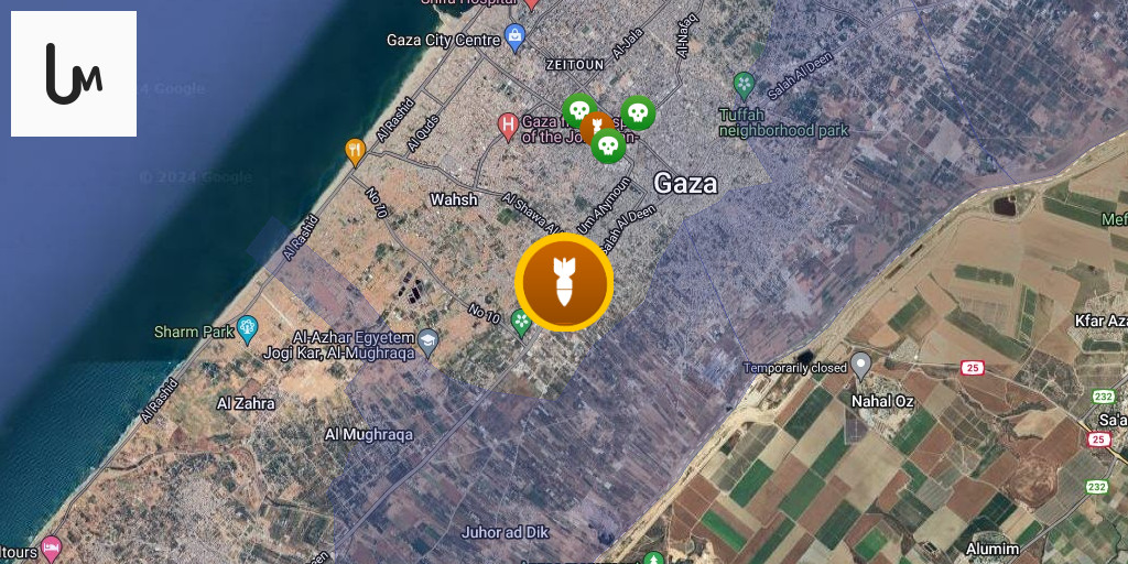Three dead and several wounded in the targeting of a tent for displaced people at Al-Majida Wasila School in Gaza City.