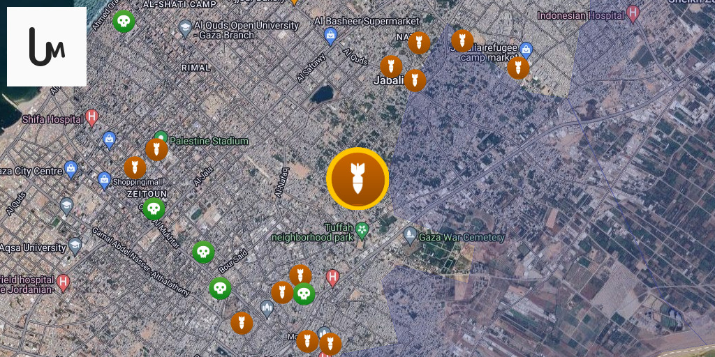 Israeli airstrikes target Jabalia al-Balad and al-Nazla cemetery, west of Jabalia, in the northern Gaza Strip.