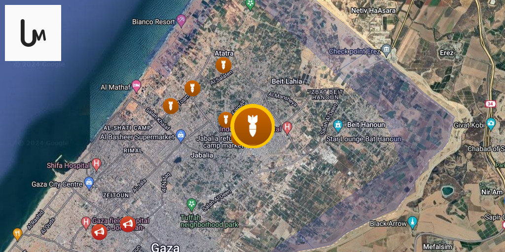 Renewed airstrikes on the western areas of Beit Lahia, north of the Gaza Strip.
