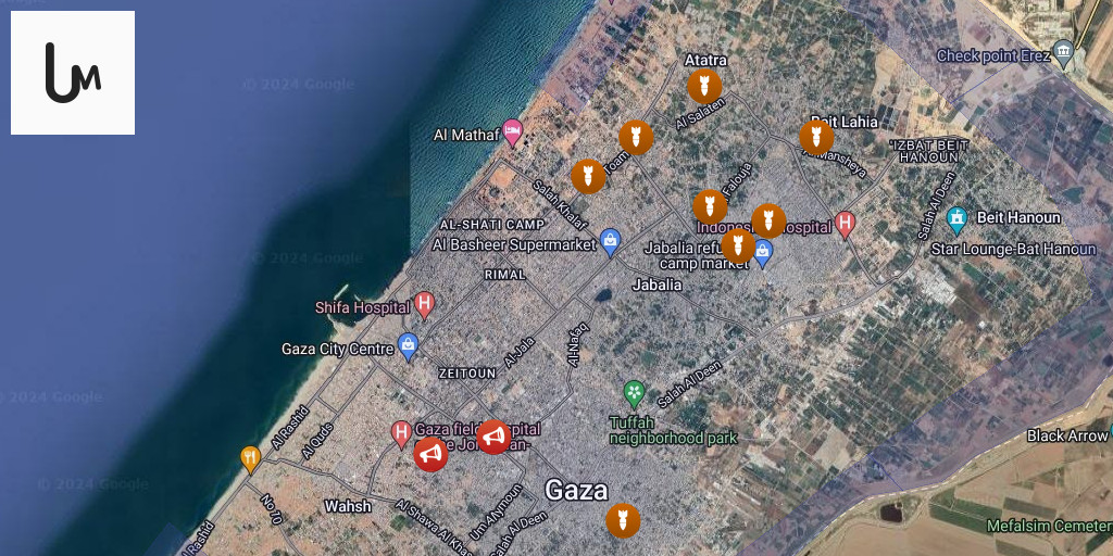 Renewed airstrikes on the western areas of Beit Lahia, north of the Gaza Strip.