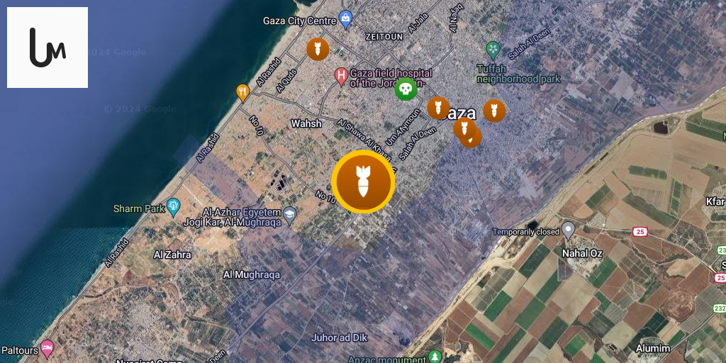 An Israeli airstrike targeted the vicinity of Al-Amal Hospital, north of Khan Yunis, in the southern Gaza Strip.