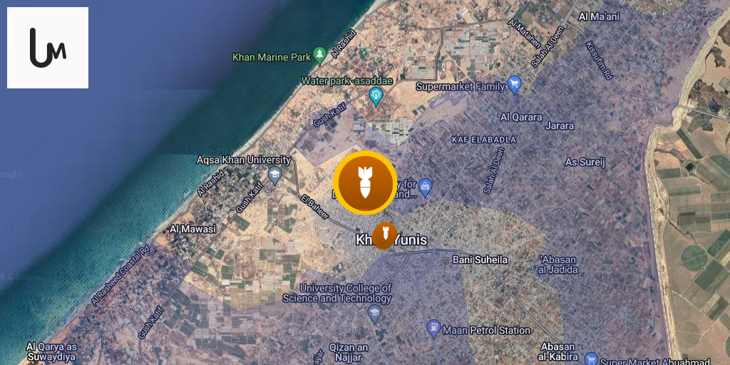 Aircraft launch raids on Al-Amal neighborhood, northwest of Khan Yunis.