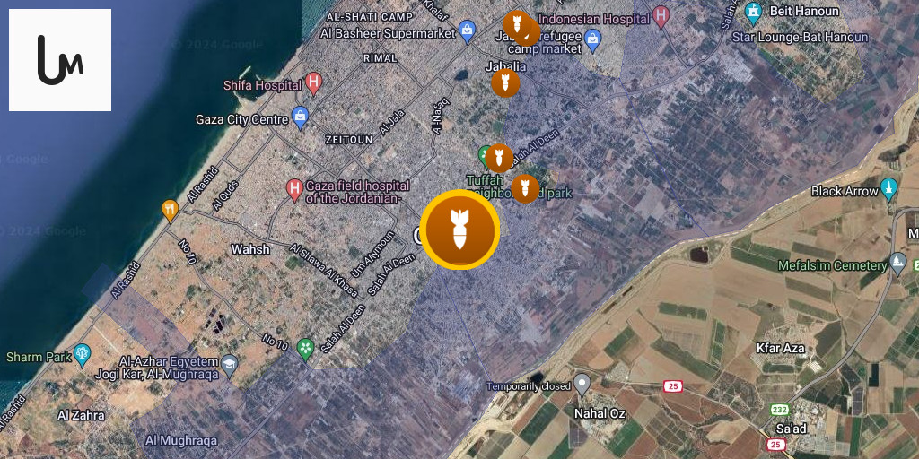 Airstrikes hit the al-Tuffah neighborhood, northeast of Gaza City.