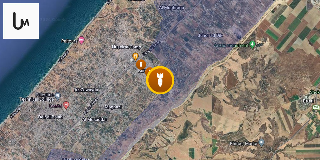 An Israeli airstrike east of Al-Bureij camp in the central Gaza Strip.