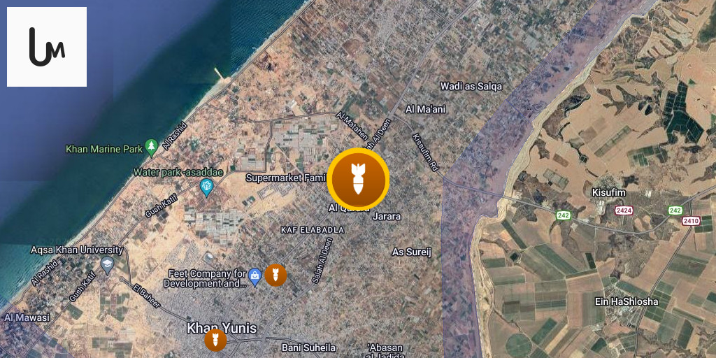 Airstrikes hit the Al-Balad and Al-Katiba areas in the center of Khan Yunis, south of the Gaza Strip.