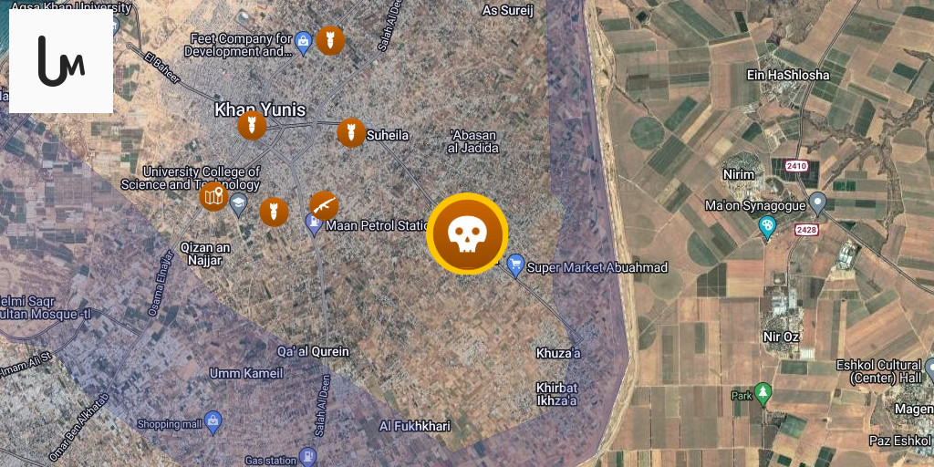 Airstrikes hit the Al-Balad and Al-Katiba areas in the center of Khan Yunis, south of the Gaza Strip.