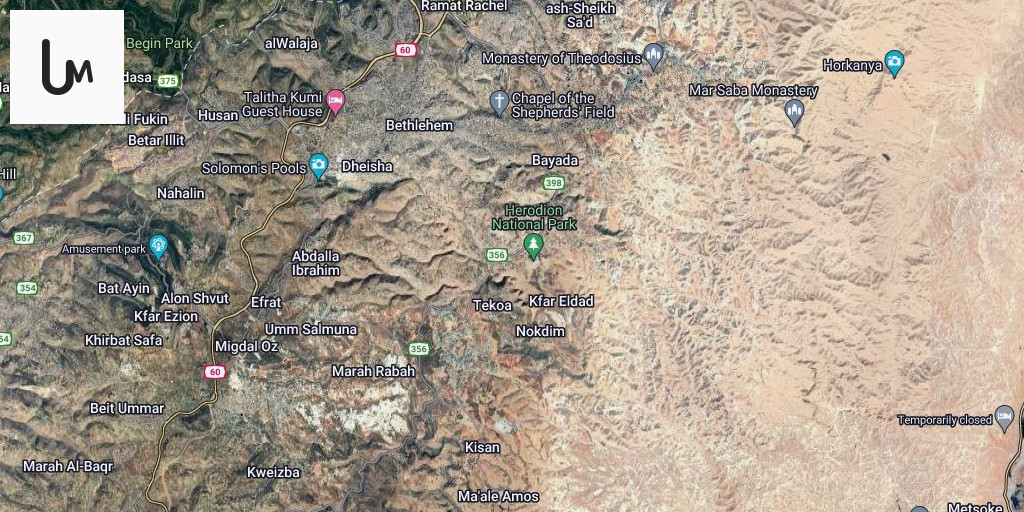 Aerial photo of the scene of the stabbing attack in Gush Etzion, south of Bethlehem, which resulted in one death and eight injuries, one of them serious.