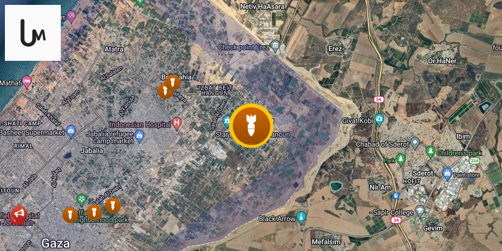 Airstrikes target the vicinity of Al-Jaru Street, east of Al-Tuffah neighborhood, east of Gaza City.