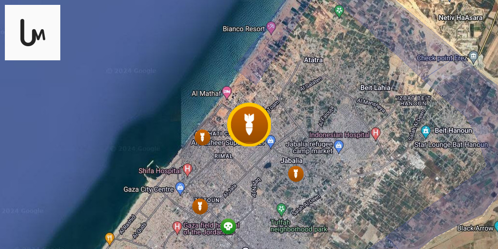 An Israeli drone strike hit Al-Nasr Street and another hit near Al-Quds Hospital in Tal Al-Hawa, south of Gaza City.