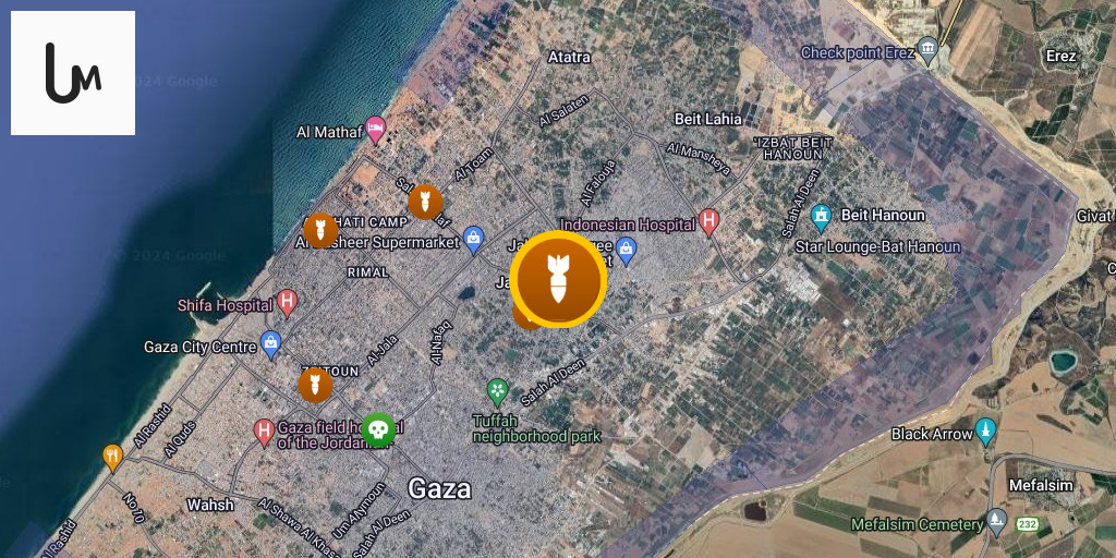 An Israeli drone strike hit Al-Nasr Street and another hit near Al-Quds Hospital in Tal Al-Hawa, south of Gaza City.