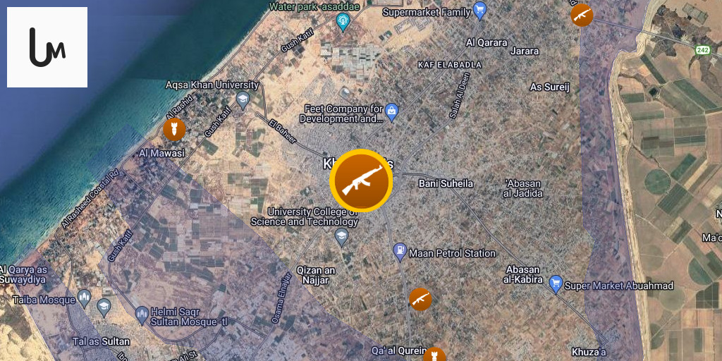 Advancement of vehicles, accompanied by artillery shelling and airstrikes, northeast of Al-Fakhari, east of Khan Yunis, in the southern Gaza Strip.