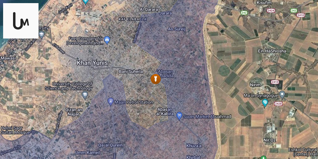 Witnesses have been reporting since morning that the eastern areas of Khan Younis have been targeted by airstrikes, artillery shelling, and gunfire.