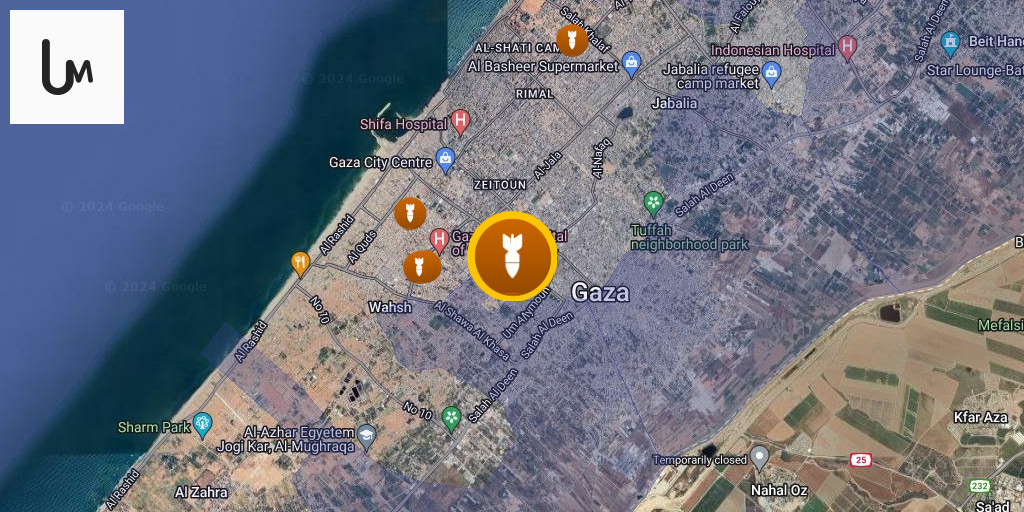 An airstrike targeted the vicinity of Bilal bin Rabah Mosque in the Zeitoun neighborhood, southeast of Gaza City.
