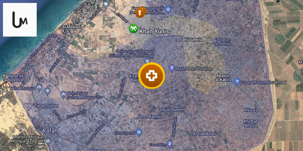 Two dead and wounded as a result of the bombing of the tents of the displaced in the Mawasi area of Al-Qarara town, northwest of Khan Yunis.