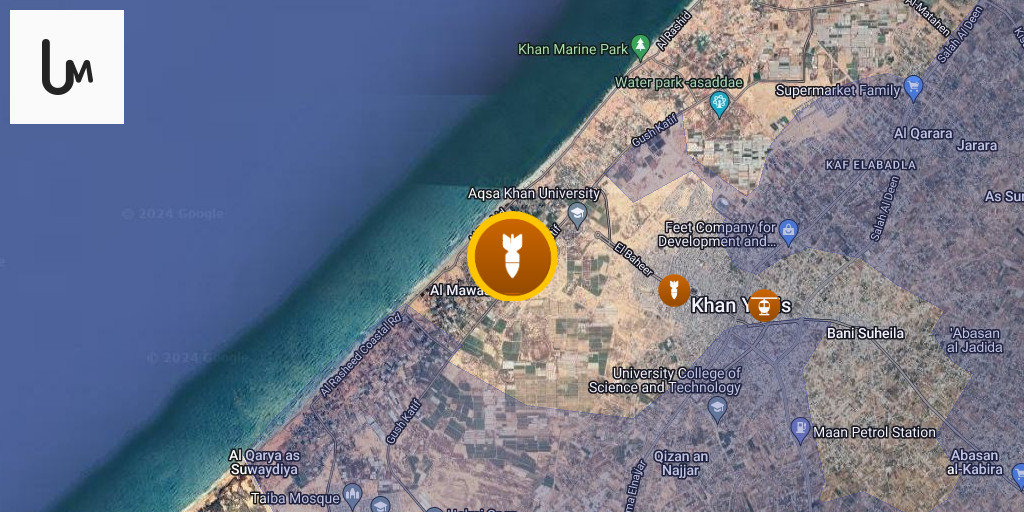 Israeli raids target the Al-Mawasi area west of Khan Yunis, in the southern Gaza Strip.