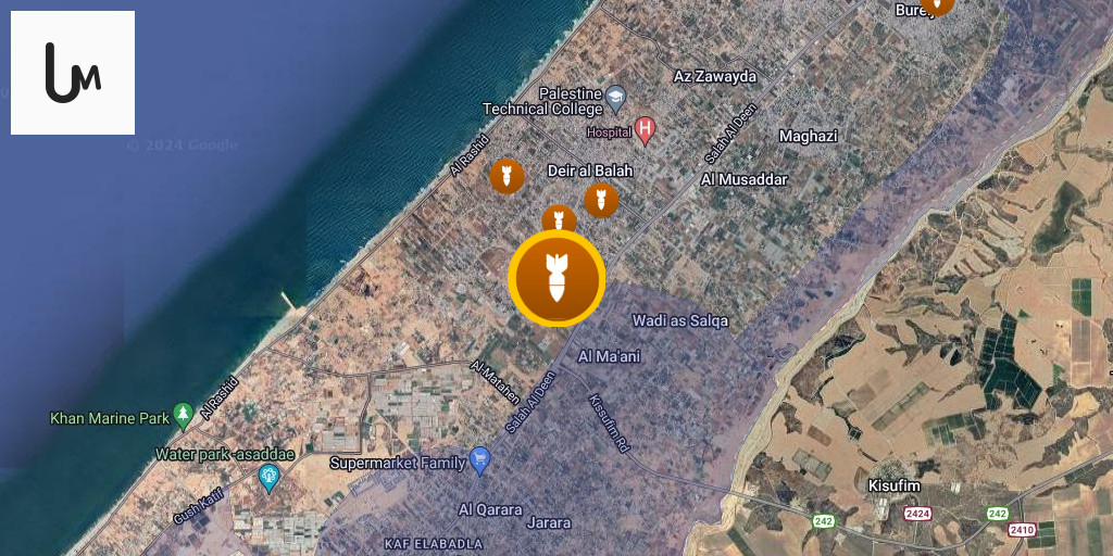 An airstrike on the southern city of Deir al-Balah in the central Gaza Strip.