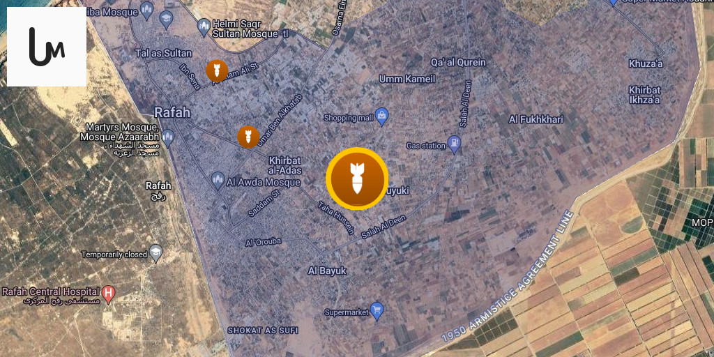 Israeli airstrike inside the yellow line east of Gaza City