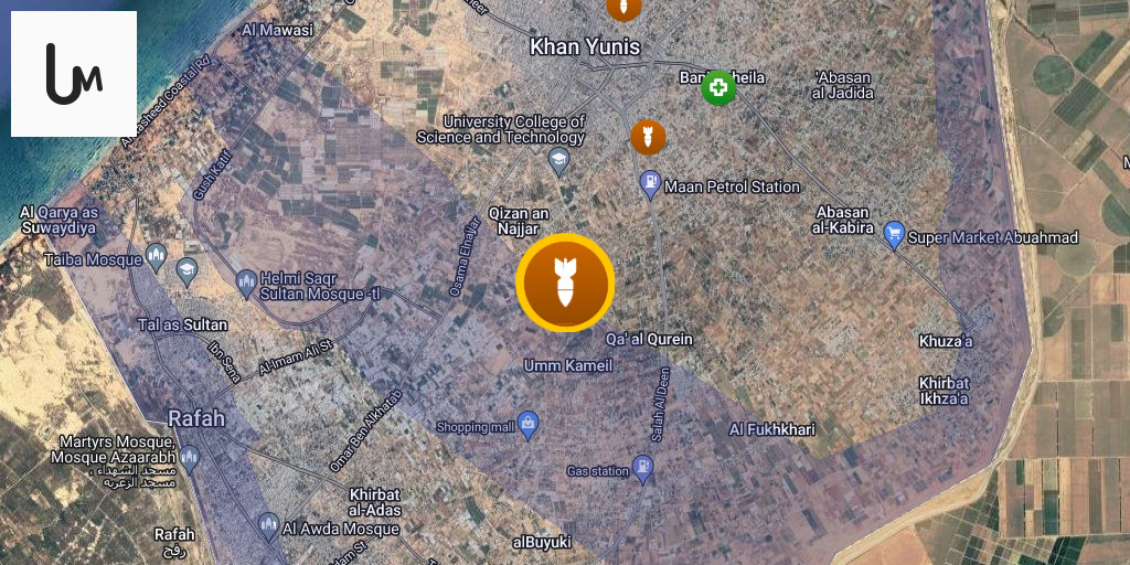 Airstrikes targeted land near Al-Mukhtar Chalet, northwest of Al-Qarara town, north of Khan Yunis, in the southern Gaza Strip.