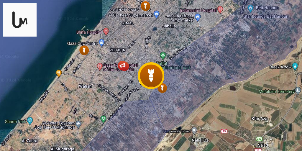 Israeli airstrike inside the yellow line east of Gaza City