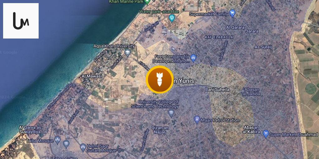 Two Israeli airstrikes coincided with artillery shelling of the center of Khan Yunis, south of the Gaza Strip.