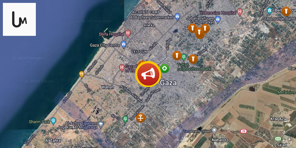Airstrikes target the vicinity of Al-Durra Children's Hospital in the Al-Tuffah neighborhood, east of Gaza City.
