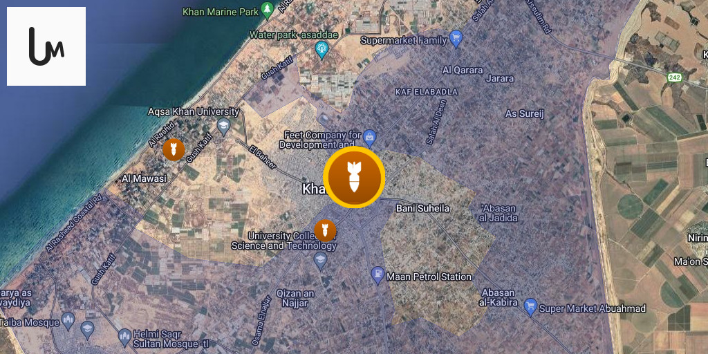 Drones launched three raids on the Al-Mawasi area, west of Khan Yunis, in the southern Gaza Strip.