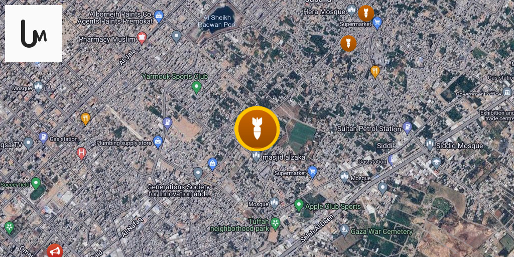 An Israeli airstrike targeted the vicinity of the Hamad al-Hasanat Mosque in the Nuseirat refugee camp in the central Gaza Strip.