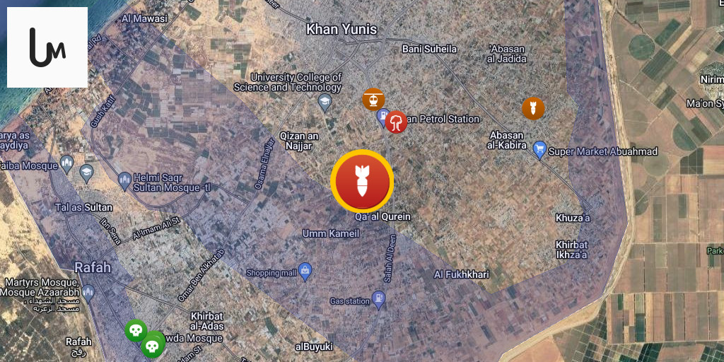 An airstrike and artillery shelling, accompanied by Israeli helicopter gunship fire, northeast of Khan Yunis.
