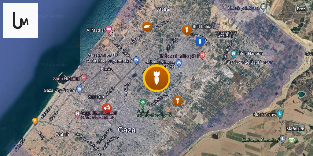 Airstrike targets the vicinity of the Gaza European Hospital, east of Khan Yunis.