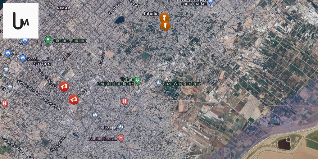 Launches an airstrike on the eastern Shuja'iyya neighborhood, and blows up residential buildings east of the Tuffah neighborhood, east of Gaza City.