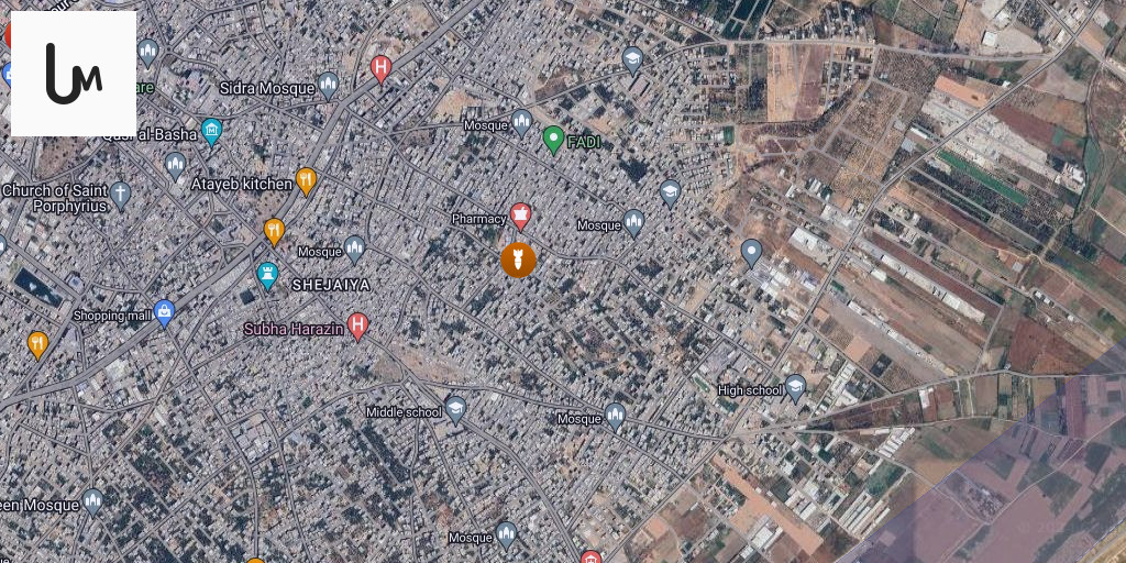 Launches an airstrike on the eastern Shuja'iyya neighborhood, and blows up residential buildings east of the Tuffah neighborhood, east of Gaza City.