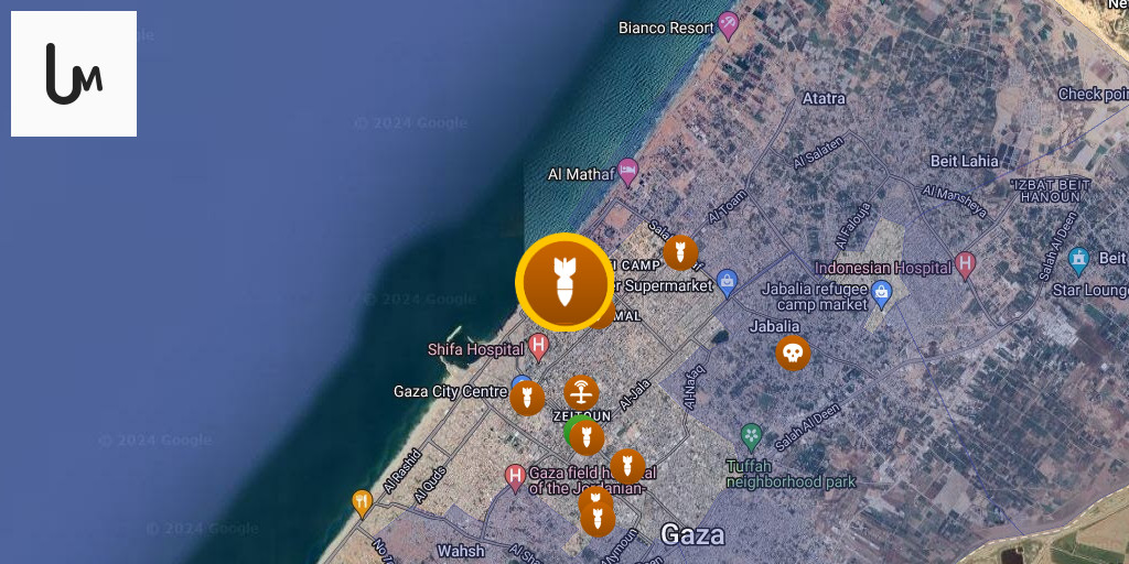 Israeli airstrikes hit the Al-Maghribi and Al-Sabra areas near the Jordanian Hospital, south of Gaza City.