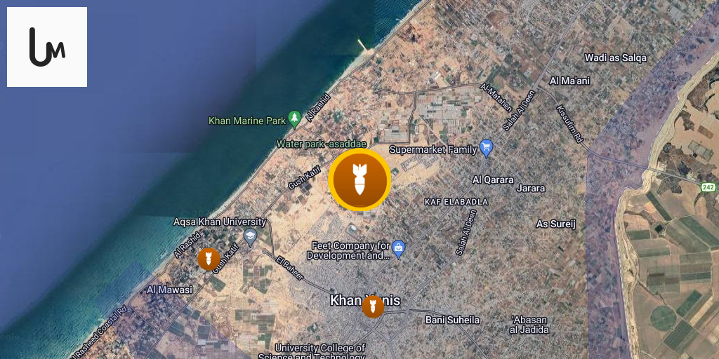 An airstrike by reconnaissance aircraft targeted the vicinity of the Applied University in Mawasi, Khan Yunis, in the southern Gaza Strip.